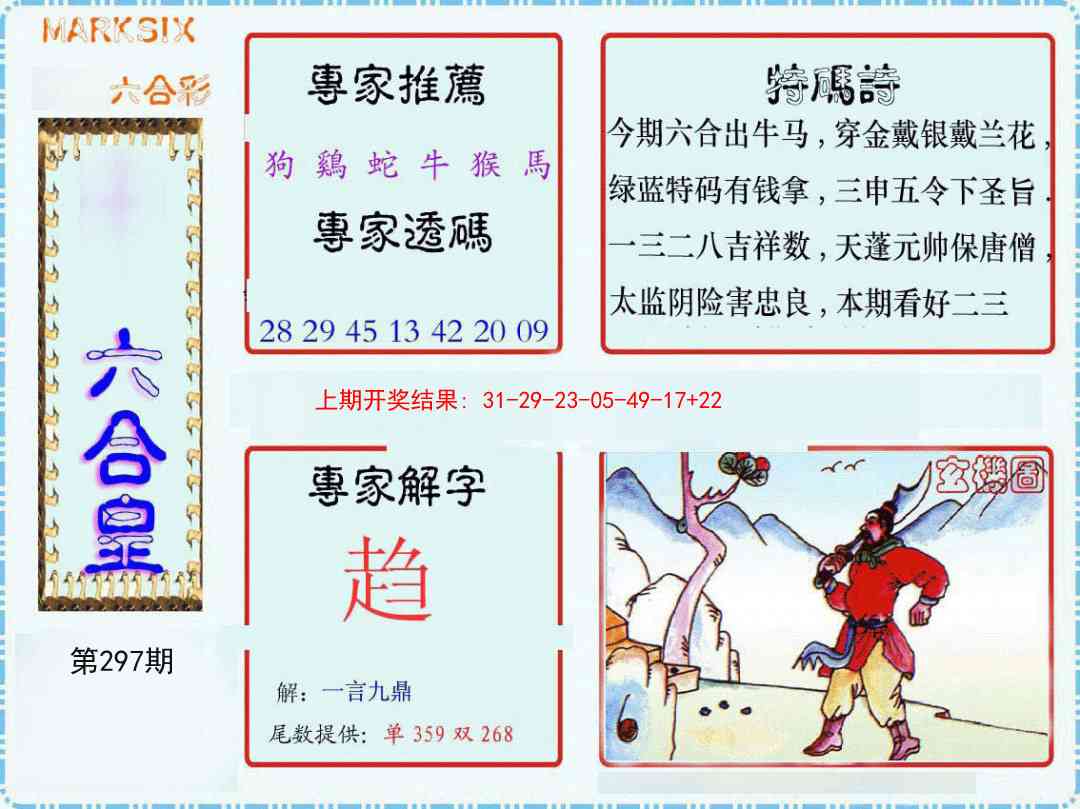 297期: 澳门六合彩彩圖信封【黄财神报】每期自动更新