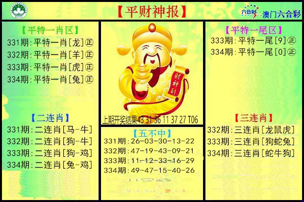 334期: 澳门六合彩彩圖信封【平财神报】每期自动更新